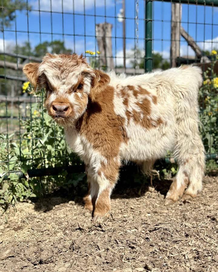 Diara is a rare gem—a striking Mini Highpark with stunning markings and a lively spirit. At 7 months old, she’s playful, curious, and has the gentle temperament that makes her a perfect addition to any herd. Her unique coloring makes her stand out in any pasture, and her affectionate nature ensures she’ll fit right into your heart and home. Don’t miss the chance to own such a beautiful and rare breed!”