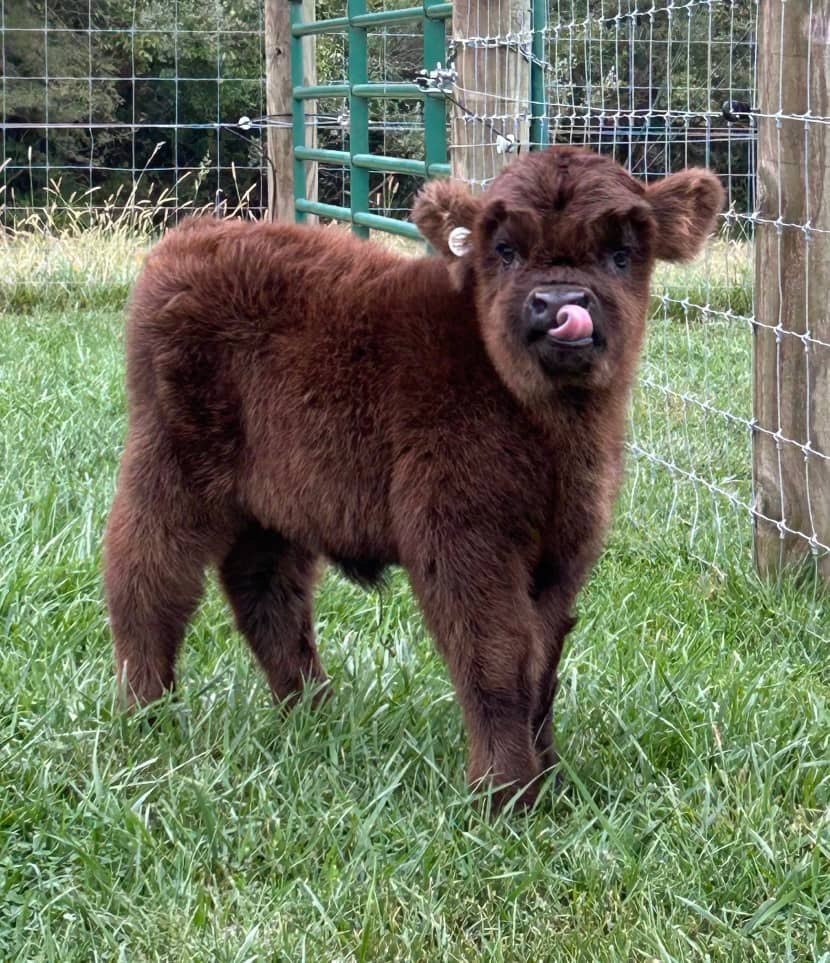 Rosie, a 7-month-old Mini Highland, embodies tranquility and charm. His deep red, shaggy coat and calm demeanor make his instantly endearing. she loves gentle brushes and quiet afternoons grazing. Perfect for first-time owners or those seeking a serene presence, Rusty will quickly become the beloved heart of your home.